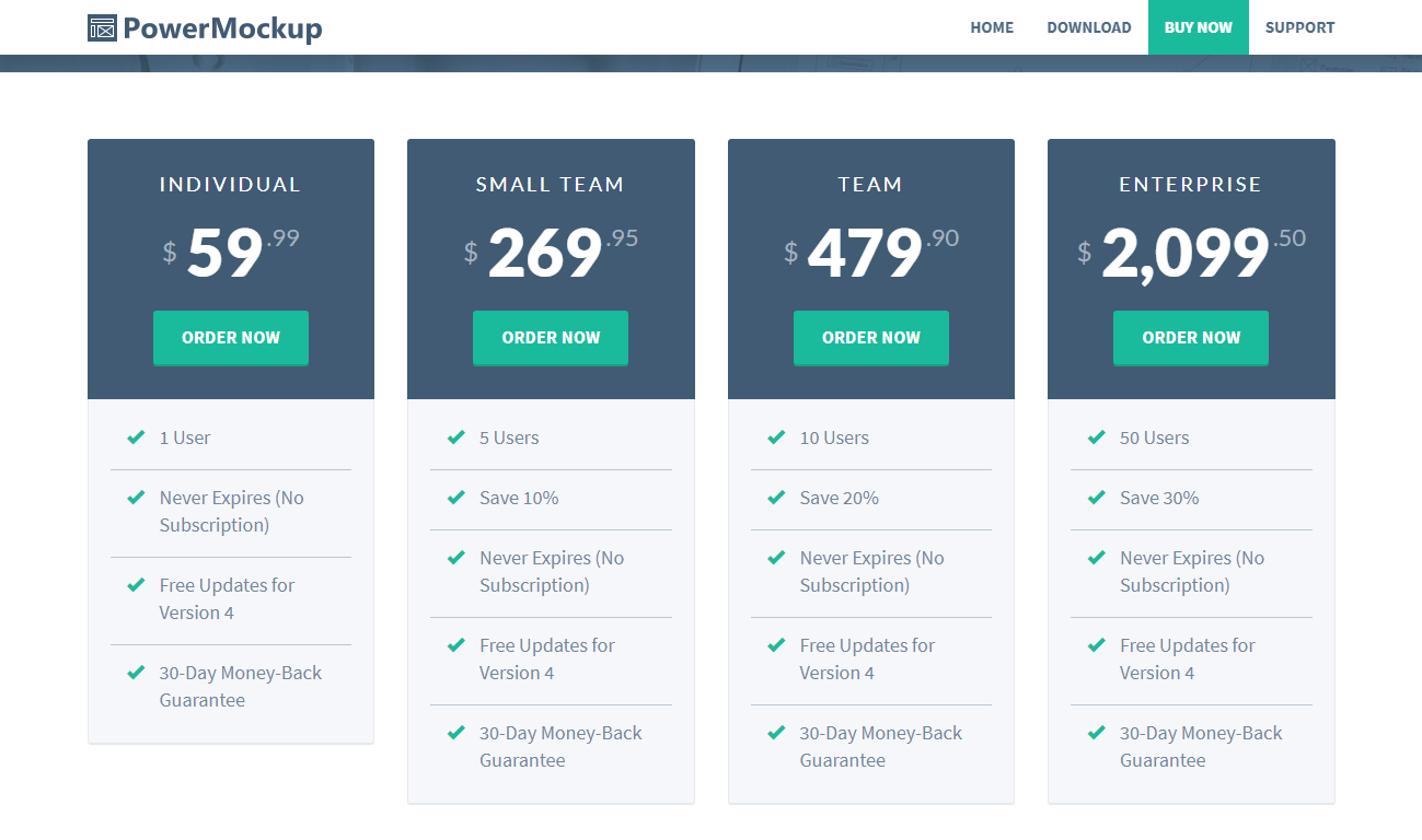 개인 사용자는 $59.99 에 구매가 가능합니다. 기획을 전문으로 하고 있다면 PowerMockup은 그 가격을 충분히 만족시킬 만한 프로그램이라 여겨지며 기획자에게 있어서는 디자이너가 애용하고 있는 Sketch나 Adobe XD와 같은 툴이라 생각됩니다. 정보를 시각화하는 데 필요한 요소들이 충실히 들어가 있기에 나쁘지 않은 선택이 될 수 있을 것 같습니다.