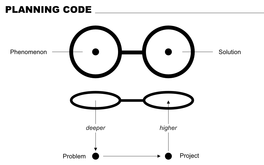 이것을 옆에서 보면 해결해야 하는 각종 문제를 찾아보며 계속해서 깊게 파고들다 보면, 근본적인 문제에 도착할 수 있으며 이 문제를 해결하기 위한 프로젝트를 통해 계속해서 접근하면서 질을 높여 가다 보면 결국은 문제의 해결방법을 찾아내는 과정을 나타내고 있습니다.