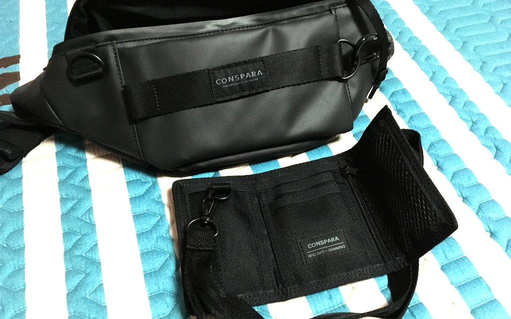가방 자체가 사각형이 아닌 역삼각형의 구조를 가지고 있어서 많은 물건을 수납하기보다는 물통, 3단 우산, 지갑, 소형 디카, 보조배터리, 여권 등의 귀중품을, 정말 여행 시에 몸에 딱 들고 다닐 만큼의 물건을 보관하기에는 유용할 것 같다는 생각이 들었습니다. 사각형이 가지고 있는 특성상 물건이 쏠렸을때의 부분을 고려한다면 역삼각형이 좋을 것 같기도 한데 이 수납 크기 부분은 호불호가 가릴 것 같습니다.
