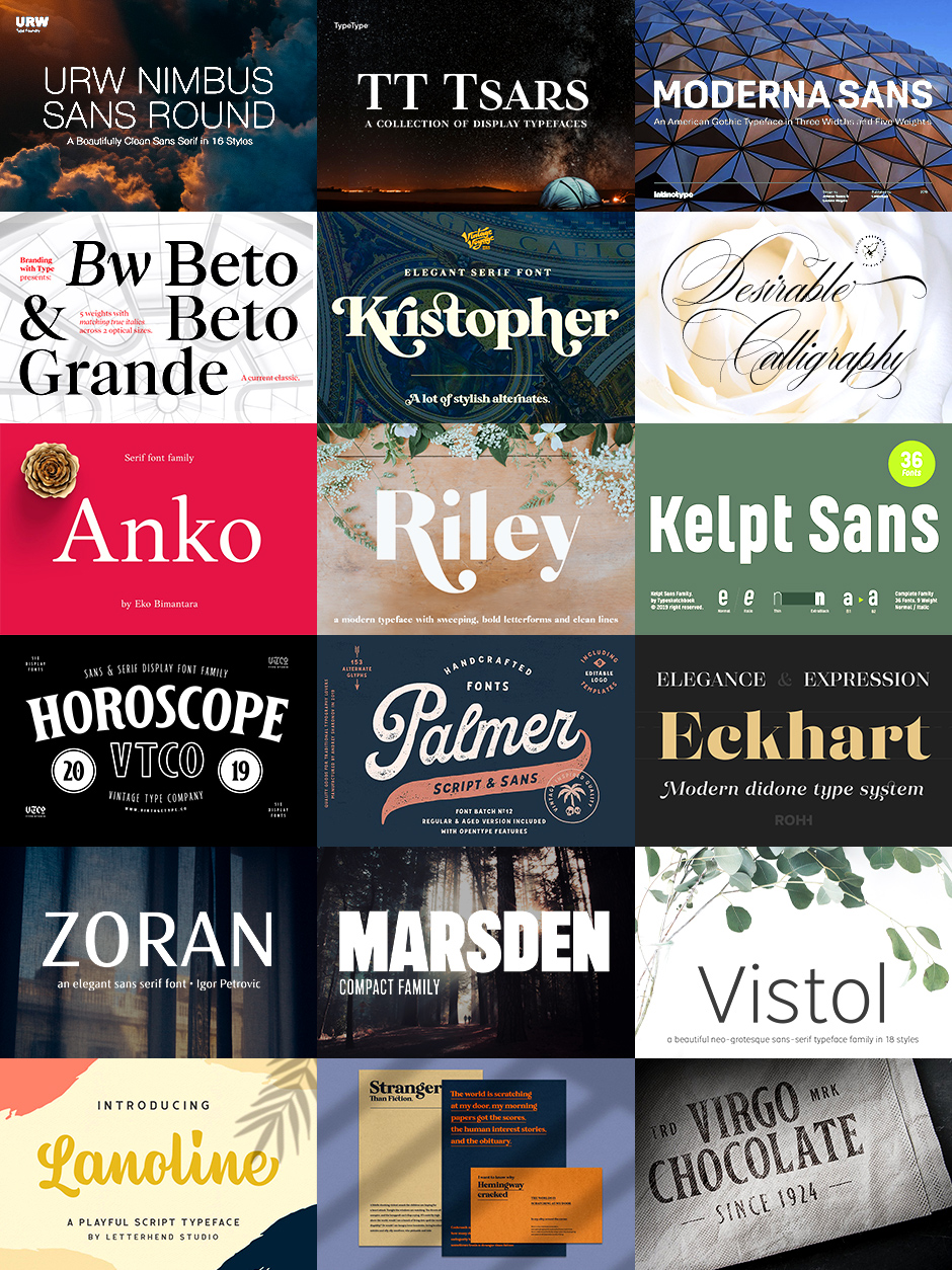 Versatility is key when it comes to making your design work pop and this collection is jam-packed with the most popular and versatile fonts available i