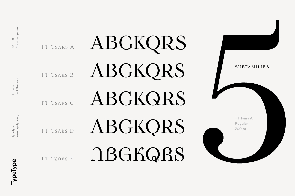 20개의 폰트 패밀리로 구성되어 있는 약 20만원 상당의 TT Tsars.