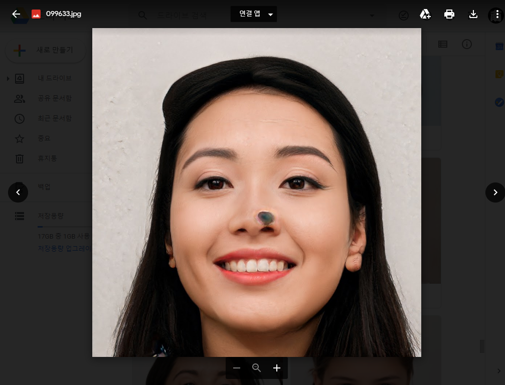 실제 인물 사진이라고 믿을 수 밖에 없는 수준이라 여겨졌습니다. 임의로 만들어지는 만큼 이상한 사진도 생성이 되긴 하지만 연령층도 다양하고 전체적으로 정말 잘 만들어진 것 같습니다.