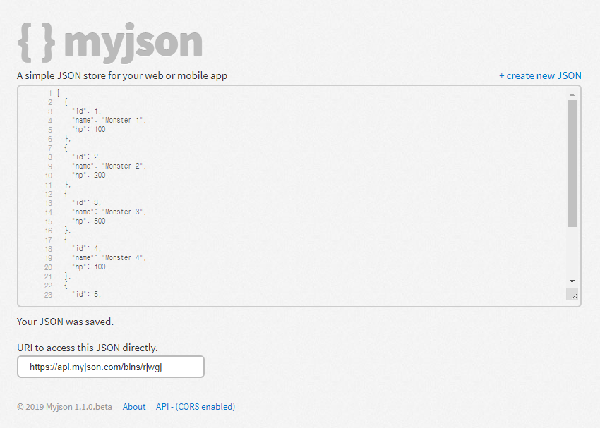 프로그램 연습을 하다보면 필수적으로 json을 사용한 예제를 접하게 되지만, 로컬에서는 이 기능이 잘 되질 않는 것을 경험하게 됩니다. 결국 FTP나 여기저기서 찔끔찔끔씩 공간을 잡아가면서 사용하게 되는데요. 아예 이런 용도로 사용 가능한 공간이 있습니다. Myjson이라는 서비스입니다.