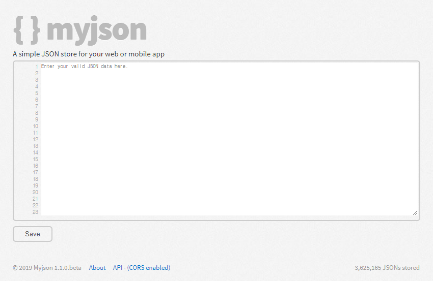 About Myjson is a simple JSON store for use in your client side web and/or mobile applications. If you've ever needed a quick place to store a configuration file or some data for your client side models, Myjson can be of service to you. Simply copy and pas