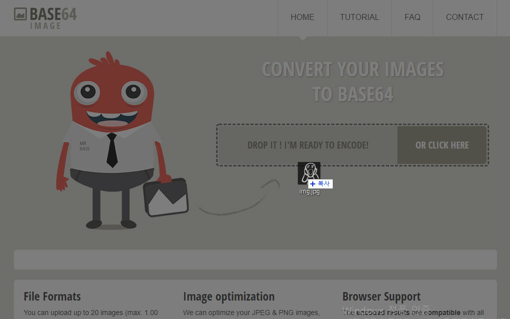 Drag & Drop으로 이미지를 올려도 되고 CLICK HERE 버튼으로 파일을 선택해도 됩니다.