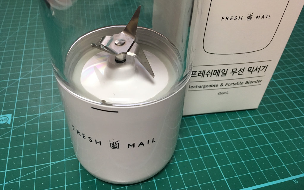 휴대용 무선충전 믹서기인데.. 이것도 받아보고 나서 스스로 가지고 있는 물건의 크기에 대한 감각에 문제가 있는 건 아닌가라는 생각이 들었던 제품입니다. 제품 페이지에서 누군가가 시연을 하는 상태나 크기 비교 이미지를 보면서 어느 정도 감안해야 하는데 크다는 생각이 들었습니다. 개인적인 휴대용이라는 이미지를 너무 크게 가지고 있었던 것이 문제였던 것 같습니다. 언제나 싱싱한 과일을 그 자리에서 바로 갈아먹겠다는 목표가 없는 한 가지고 다니기엔 무리가 있네요. 특히나 남자들은.