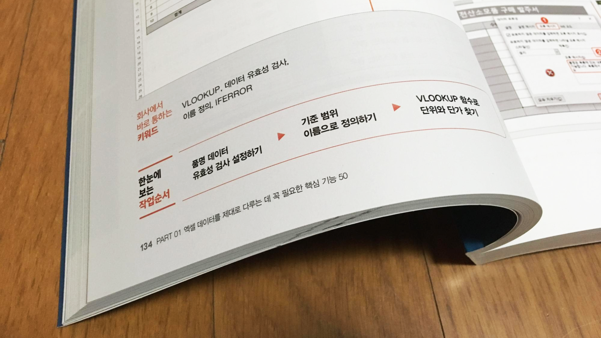 회사에서 바로 통하는 키워드를 통해 각각의 쓰임새를 이해하게끔 정리되어 있으며 한눈에 보는 작업순서를 보면 어떤 식으로 작업을 진행해야 한는지도 일목요연하게 정리되어 있어 엑셀을 잘 몰라도 전체 전인 흐름 역시 파악할 수 있게끔 구성되어 있습니다.