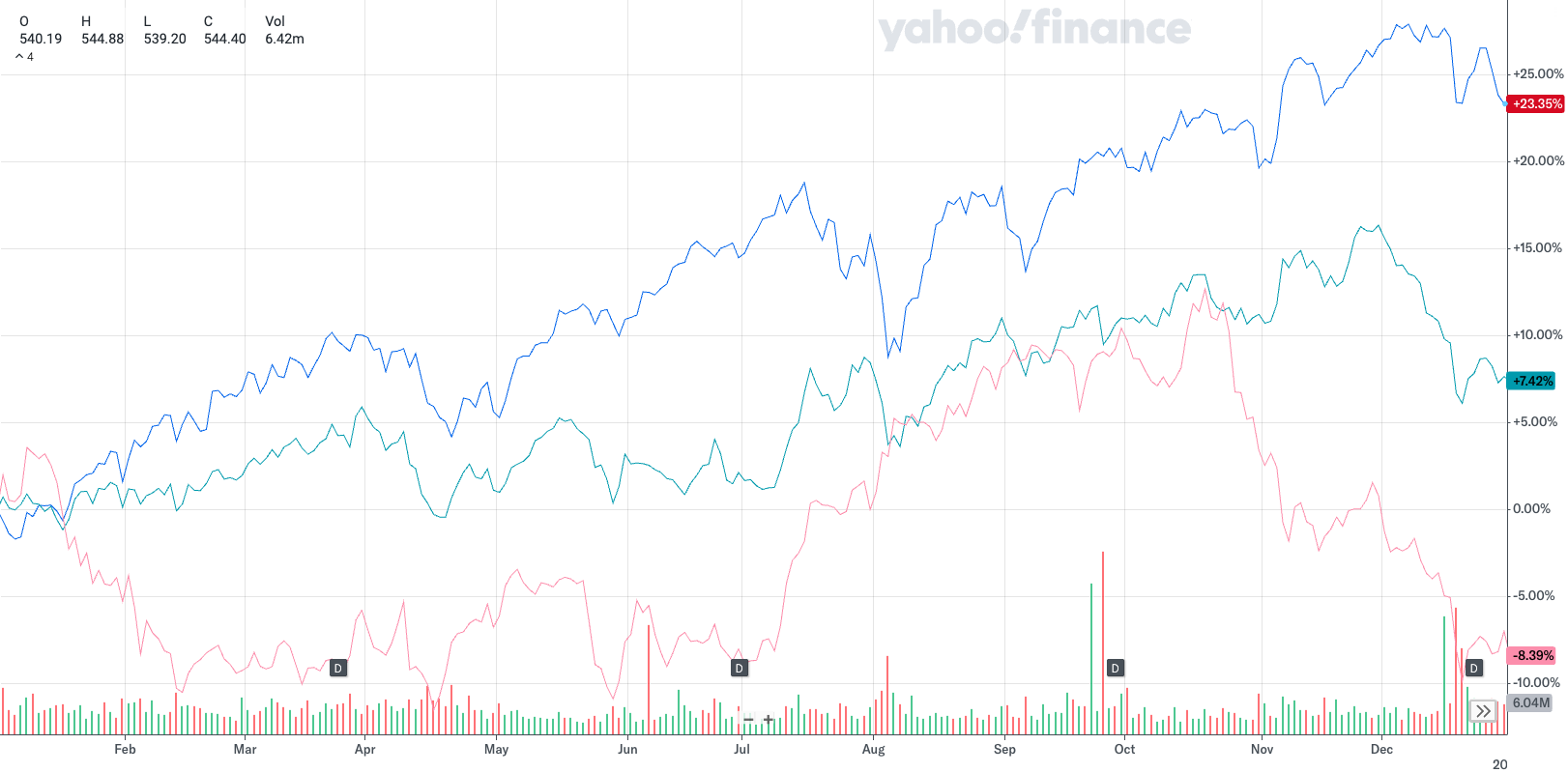 24년 한 해 가장 많은 비중을 차지하고 있는 VOO, SCHD, O의 추세.
