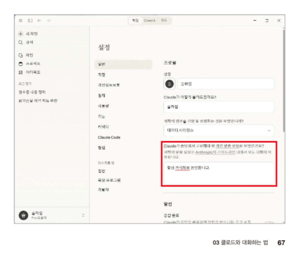다만, 이미 클로드를 능숙하게 사용 중이면서 기능적으로 아주 깊은 곳까지 파고들기를 기대하는 이들에게는 초반부의 기초적인 설정이나 설명들이 다소 지면 낭비처럼 느껴질 수도 있다. 책의 구성 자체가 입문자를 주요 타깃으로 삼아 설계되었기 때문이다. 따라서 어느 정도 배경지식이 있는 사용자라면 앞부분은 가볍게 훑고 넘어가고, 중후반부의 응용 파트부터 읽기 시작해도 전혀 무리가 없을 것 같다.
