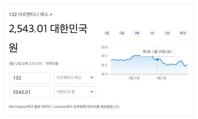 아르헨티나의 정확한 환율을 알기 위해 검색을 해봤습니다. ARS132는 2543.01원이라고 나왔습니다. 나쁘지 않은 아주 착한 가격이라 여겨집니다. 한 달 사용료에도 못 미치는 가격으로 일 년을 사용할 수 있는 겁니다.
