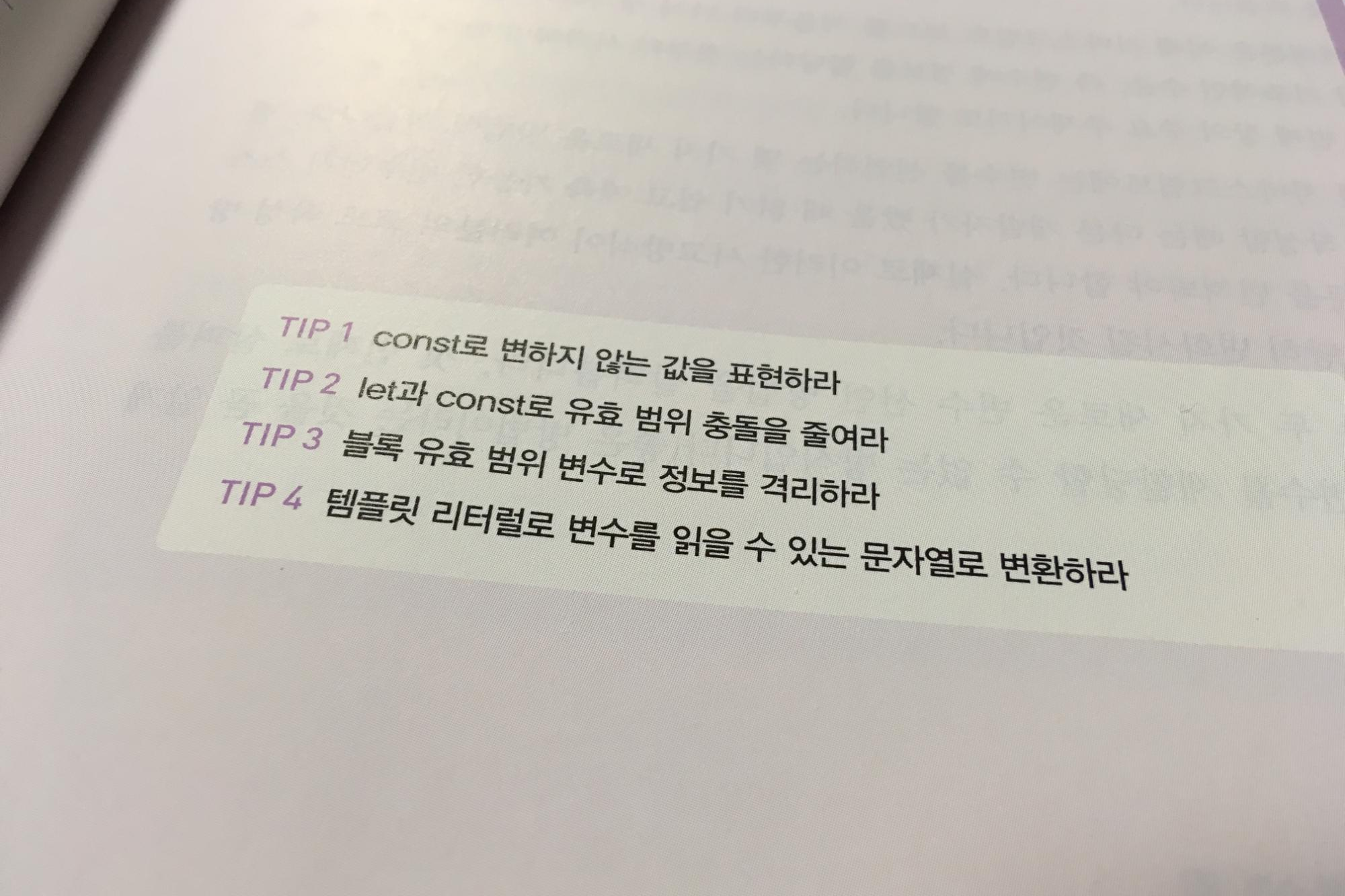 하나의 TIP에서 다루는 분량이 부담될 정도가 아니며 어렵게 생각되어 왔던 모던 자바스크립트를 조금이나마 접근하기 어렵지만은 않다는 인식의 변화를 가질 수 있었습니다. 딱딱한 느낌도 없고 동일한 내용이라도 책의 구성 방식에 따라 온도차가 있음을 느낄 수 있었습니다.
