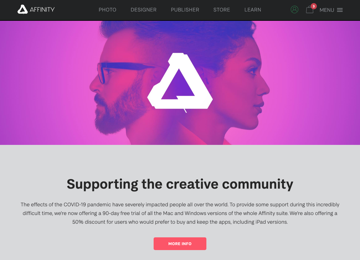 AFFINITY사에서 COVID-19(코로나바이러스)로 인해 고생하는 크리에이터들을 위해 50% 할인행사를 진행하기 시작했습니다. 50%까지 내려오는 경우는 흔하지 않죠?