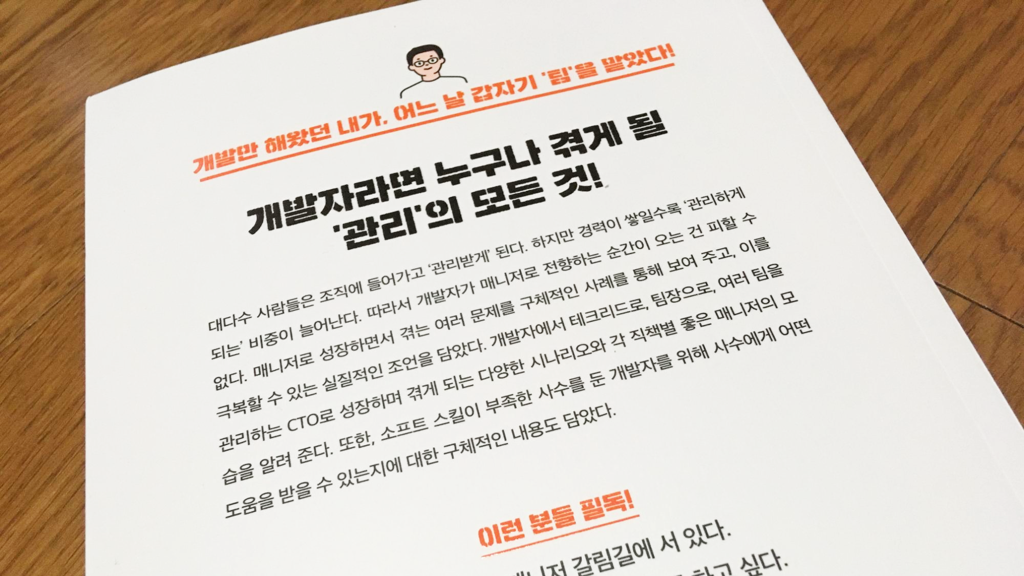 책의 원서의 배경이 외국인만큼, 국내 실정과는 거리가 있는 내용이 있기도 합니다. 프로그램, 개발자 직군은 아니지만 IT업에 종사한 지 경력이 좀 있다 보니 책에서 다루고 있는 PL 업무를 보게 되는 경우도 종종 있습니다.