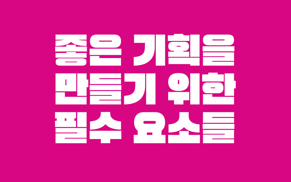 - 우리가 반드시 전달해야 하는 핵심 사상 또는 표현은 무엇인가?(What is the key thought or impression we need to convey?)