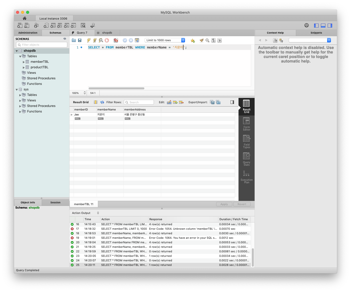 책 초반에 초보자, 입문자를 위한 구성이 좋았던 것 같습니다. 일단 따라 하는 과정을 통해 책에서 다루고 있는 내용을 간단하게 따라 할 수 있었고 DB에 대해 계략적인 내용을 체험해 볼 수 있었기에 책을 따라 하면서도 전체적인 MySQL에 대한 그림을 이해할 수 있었던 것 같습니다.