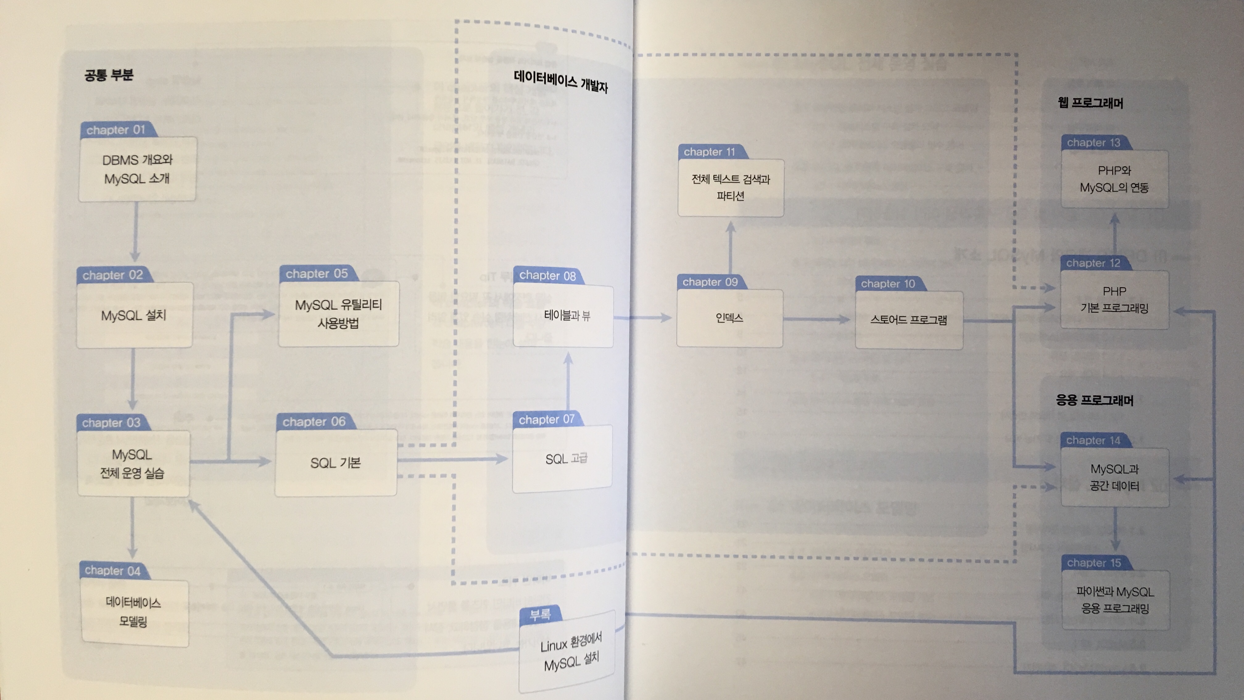 한 권으로 MySQL의 A~Z까지 모든 것을 다루겠다는 야심 찬 책입니다. 프로젝트에서 개발자들이 쿼리가 어쩐다 저쩐다 복잡하다 어렵다 말들이 많더군요. 개발직군이 아닌 저로선 복잡하겠지, 어렵겠지 공감은 갈지언정 이해는 가지 않는 영역의 이야기였습니다.