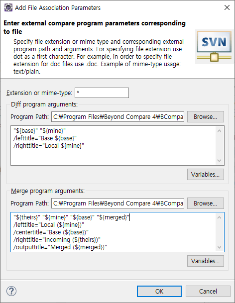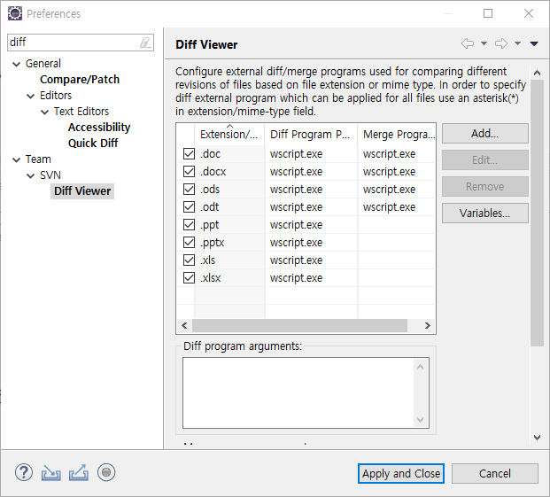 위쪽 박스 Diff program arguments에는 아래 텍스트를 입력합니다.