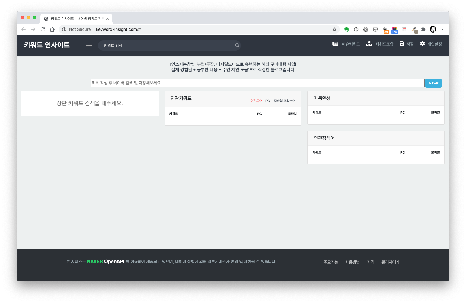 키워드 인사이트 - 네이버 키워드 검색량 및 경쟁률 조회