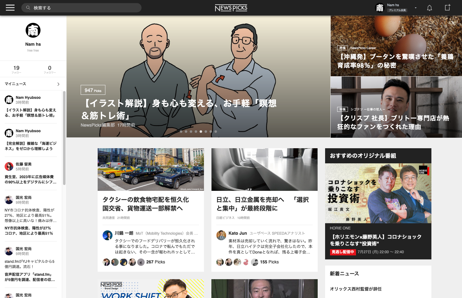 일본 뉴스 구독 서비스 중에 News Picks라는 것이 있습니다. 이런 매체 종류에 대해 잘 모르지만 유독 이런저런 기사를 통해 접하게 되어 관심이 있었는데 유료까지 이용할 필요가 있을까 싶어 무시하고 있었습니다. SNS를 통해 요 며칠간 프리미엄 체험 서비스를 신청하면 보통 10일간 이용 가능한 서비스를 14일까지로 늘려 준다고 하기에 서비스를 이용해 봤습니다.