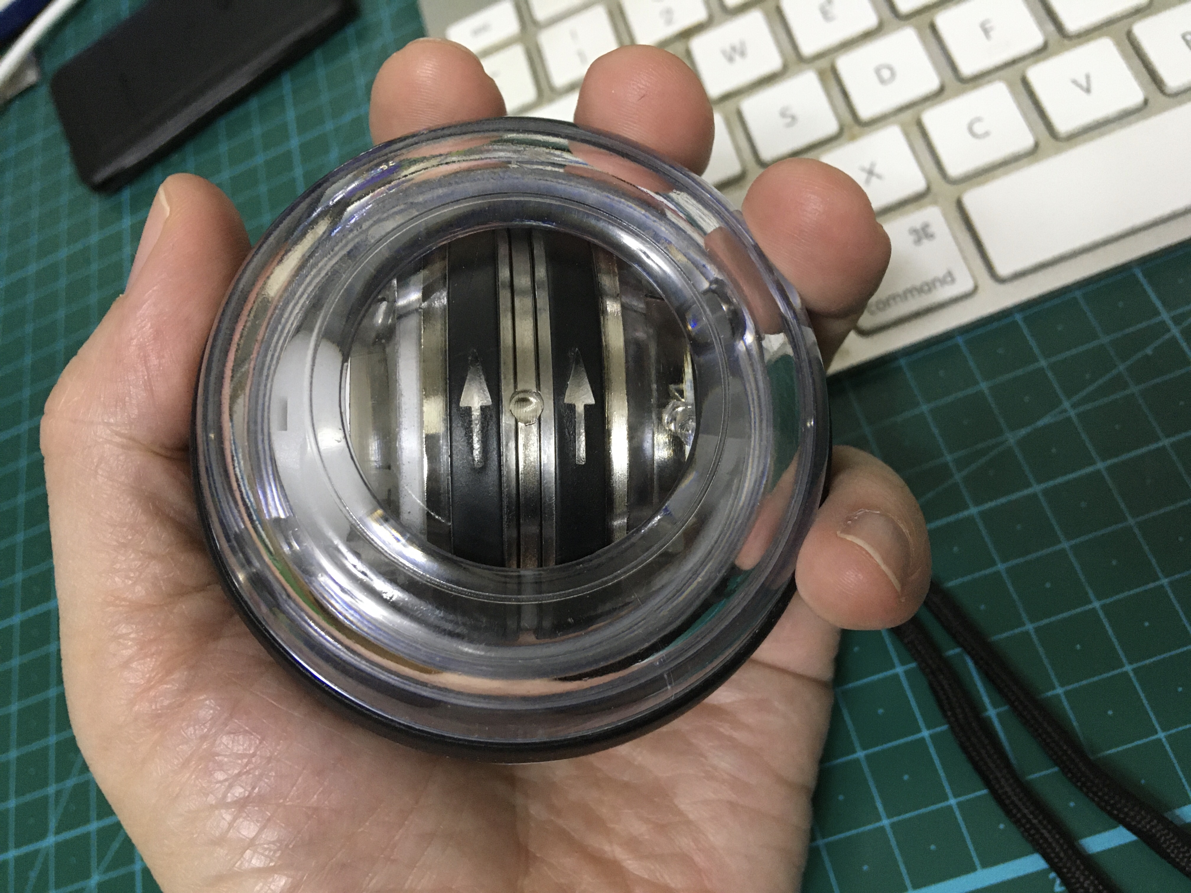 제품은 한 손에 딱 들어오기 때문에 혹시 떨어트릴 수 있는 사고를 대비해 동봉된 손목 스트랩을 하고 돌리는 것이 좋겠다. 손목 운동을 한다는 느낌이 있다 정도일 뿐 실제로 손목에 어느 정도의 효과가 있을지는 잘 모르겠다. 책상 앞에 두고 하루에 한 번씩 최대한 돌려보려 한다. 효과가 있었으면 좋겠다. 내 손모가지는 밥 벌이 수단이기 때문에 무척 소중하니까.