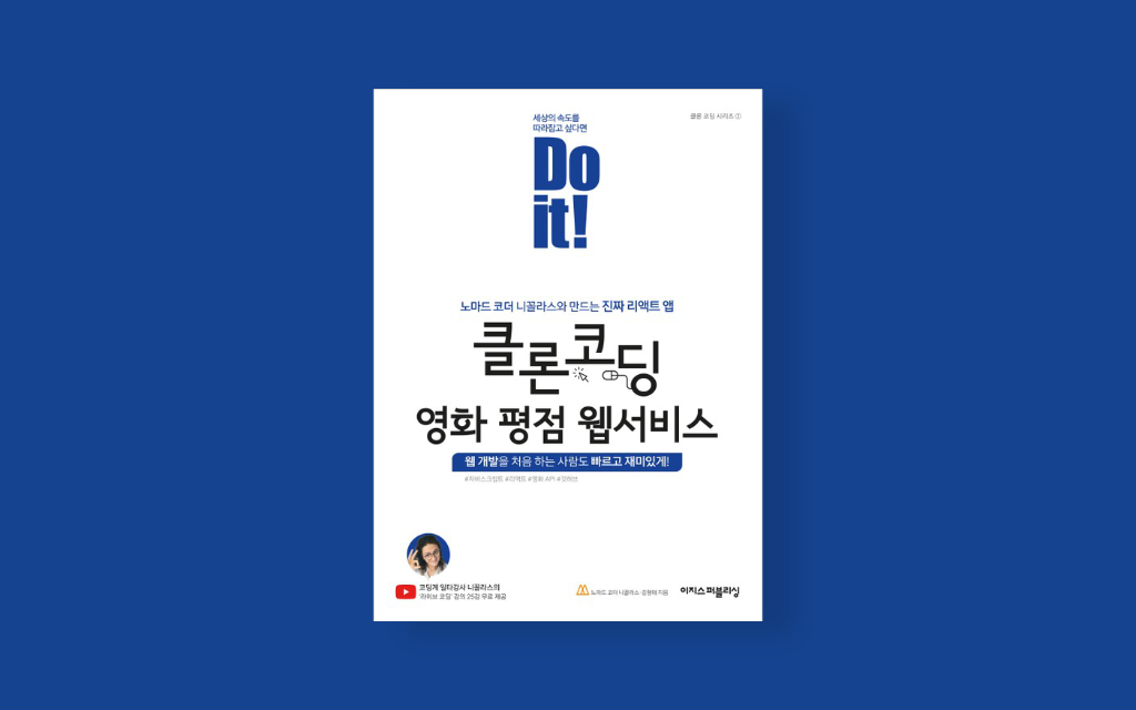 Do it! 클론 코딩 영화 평점 웹서비스는 조금이라도 경험이 있는 사람은 볼 필요가 없겠지만 생소한 사람이라면 하루나 이틀 정도 투자해서 조금씩 따라 하며 리액트를 체험해 볼 수 있을 정도의 볼륨으로 되어 있어 다른 두꺼운 책들을 접하기 전에 읽으면 좋을 것이라 여겨진다.