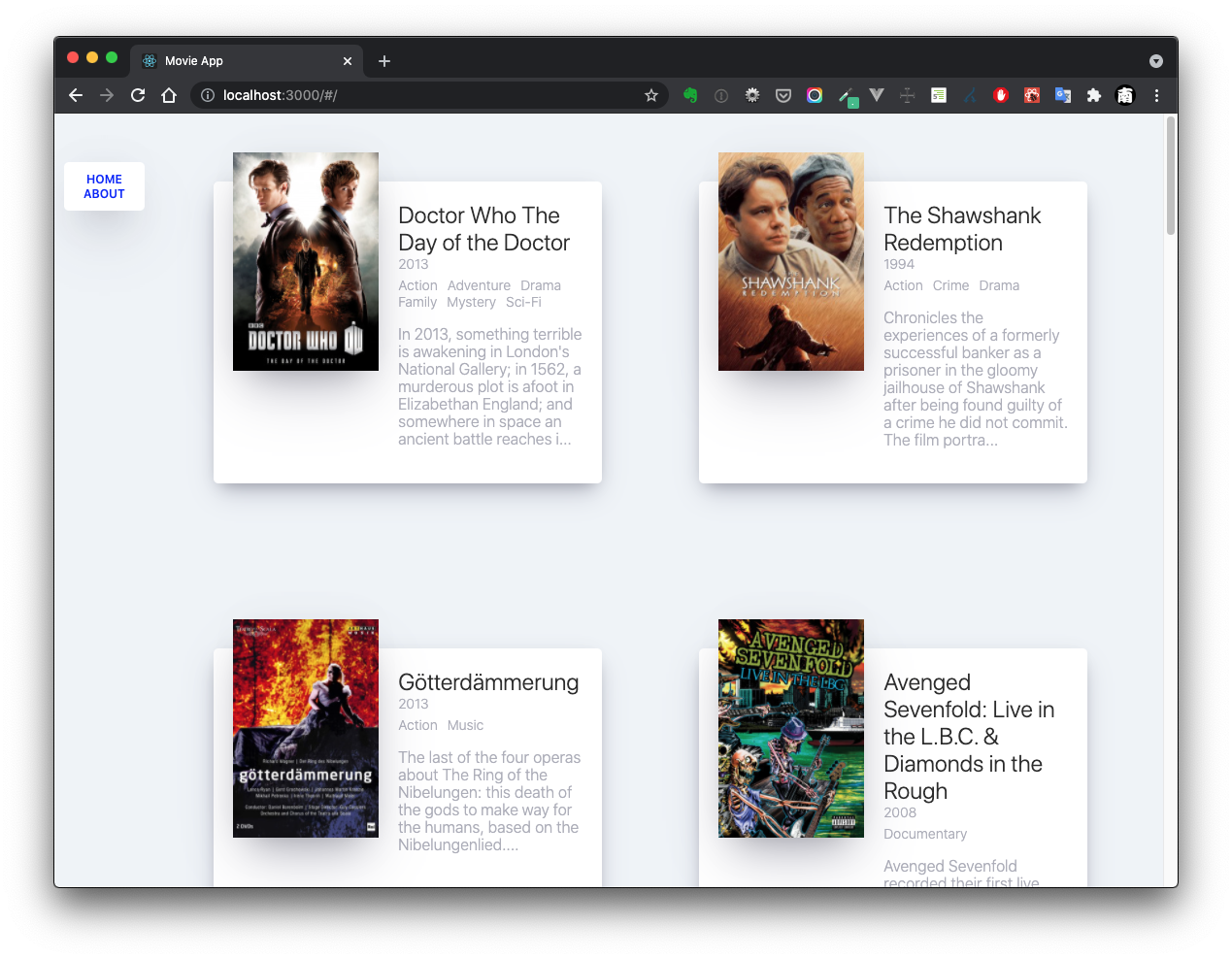 클론 코딩의 대상은 axios의 API를 사용하여 yts사이트의 정보를 가공하여 보여주는 방식으로 이루어지고 있는데 json을 불러오고 가공하는 방법을 통해 리액트를 사용한 코딩방법을 따라 하는 방식이다 보니 이론적인 방법들보다 실무적인 느낌은 나지만 어렵지 않게 '내손으로 이걸 만들었다고?' 느낄 수 있는 구성으로 이루어져 있다. 나와 같은 리액트 입문자들에게 있어 환영받을 만한 구성이지만 당연하게도 심화학습을 위해서는 부족한 책이다. 말 그대로 딱 '체험학습' 수준이라고 생각하면 좋을 것 같다.