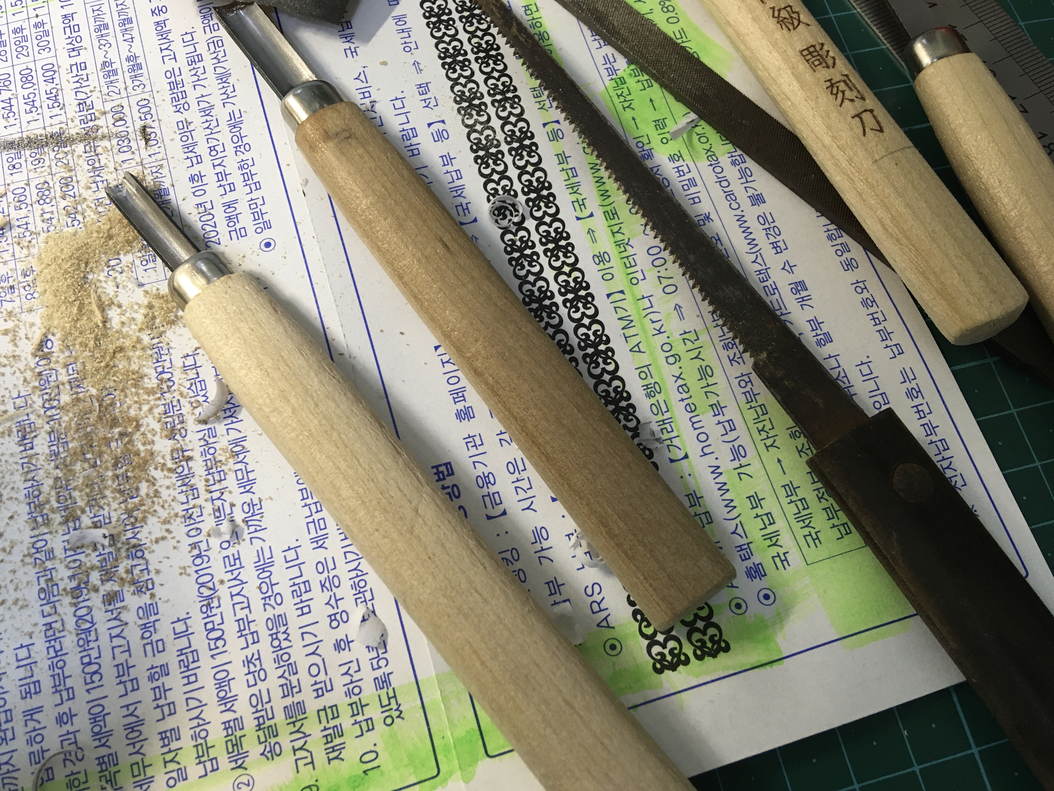 이참에 조각도도 길이를 조금 조정했다. 조각용으로 나온 일반 조각도라서 평균적으로 길이가 길다. 사용하는데 큰 문제는 없지만 아직 뷰린 구매까지는 좀 더 생각해 보고자 가지고 있는 도구들로 최대한 작업해 보기 위한 방법이었다. 어차피 사용할 일도 없어서 재워놓고 있던 것들이니 이렇게라도 사용할 수 있어 다행이다.