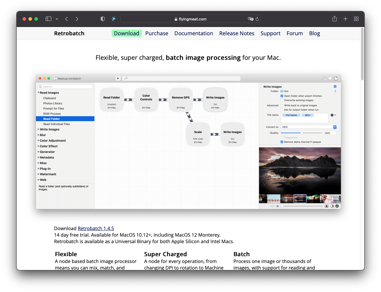 레트로 배치(Retrobatch Pro)를 구매했다. 맥을 바꾸고 나니 가끔씩 갑작스럽게 찾아오던 지름신이 강림하사, 한동안 돌아보지 않던 맥용 프로그램들을 둘러보게 되었는데 이미지 관련 배치 툴이 나쁘지 않다는 소문에 끌려 이런저런 리뷰를 보다가 개발사 홈페이지를 들어가 봤다.