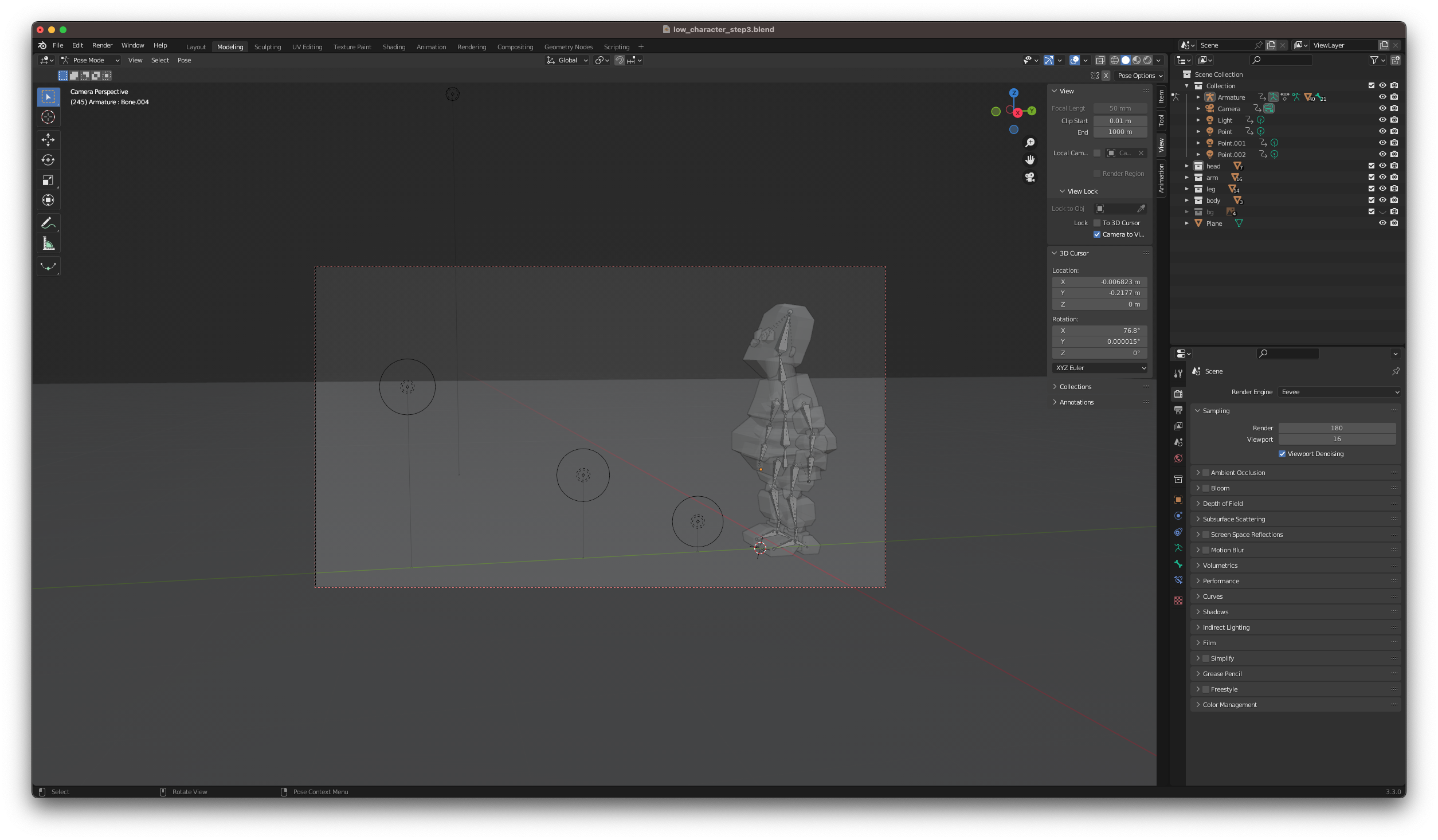 모델링도 모델링이지만 뼈대 심는 과정과 동작을 구현하는 부분은 아직도 멀고 먼 이야기지만 조금씩 건드리면서 자세를 잡는 것도 꽤나 재미있었다.