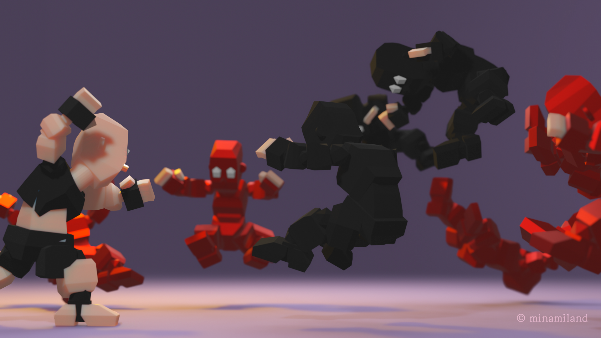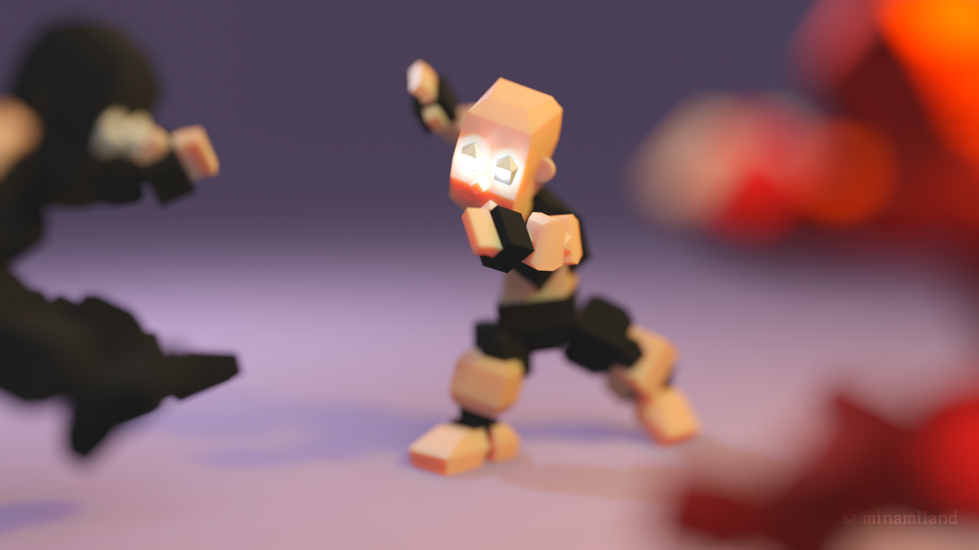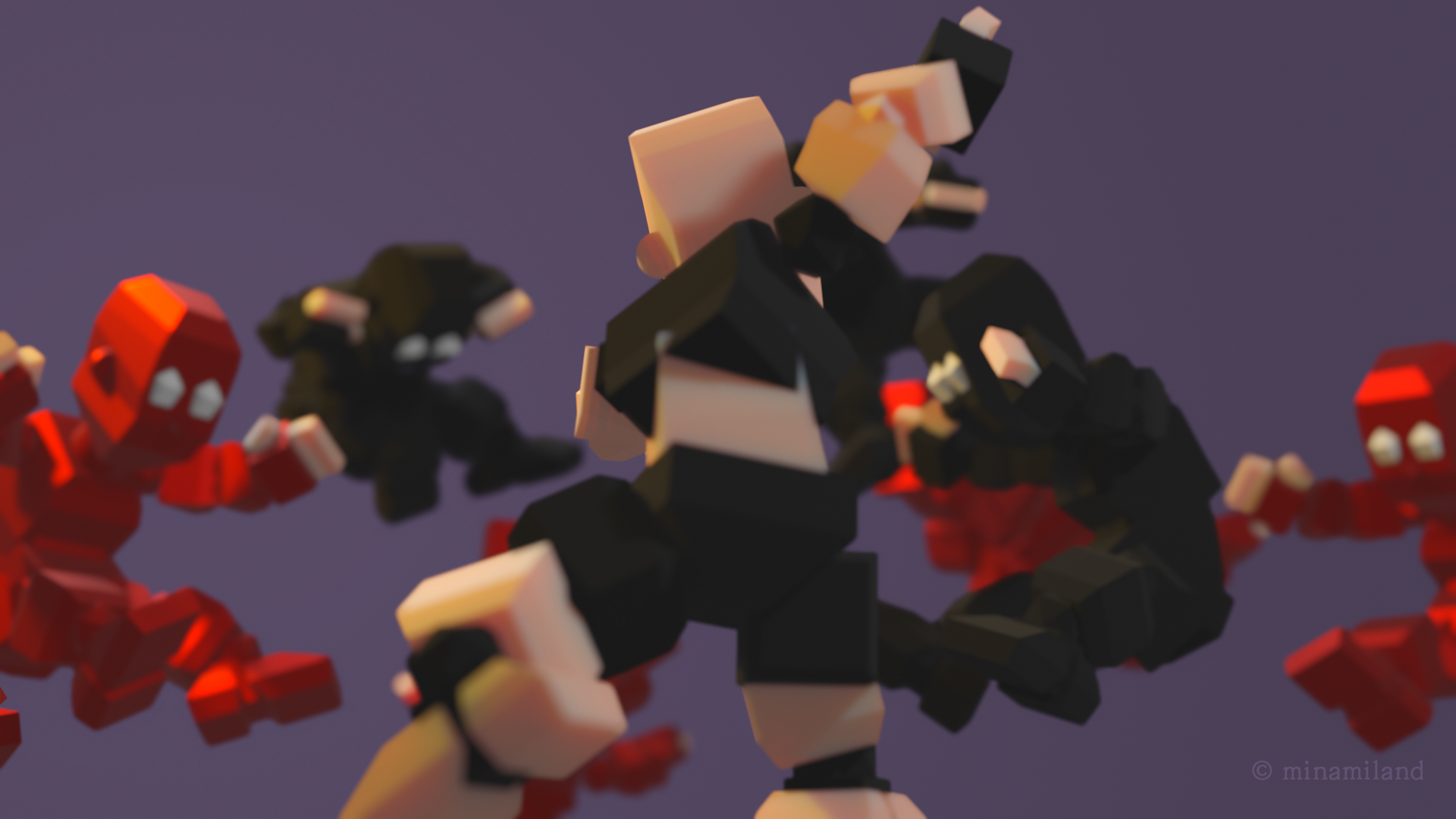 사방으로 바닥과 같은 톤으로 영역을 생성시키고 조명을 조정하고, 드디어 액션 배우들의 정렬