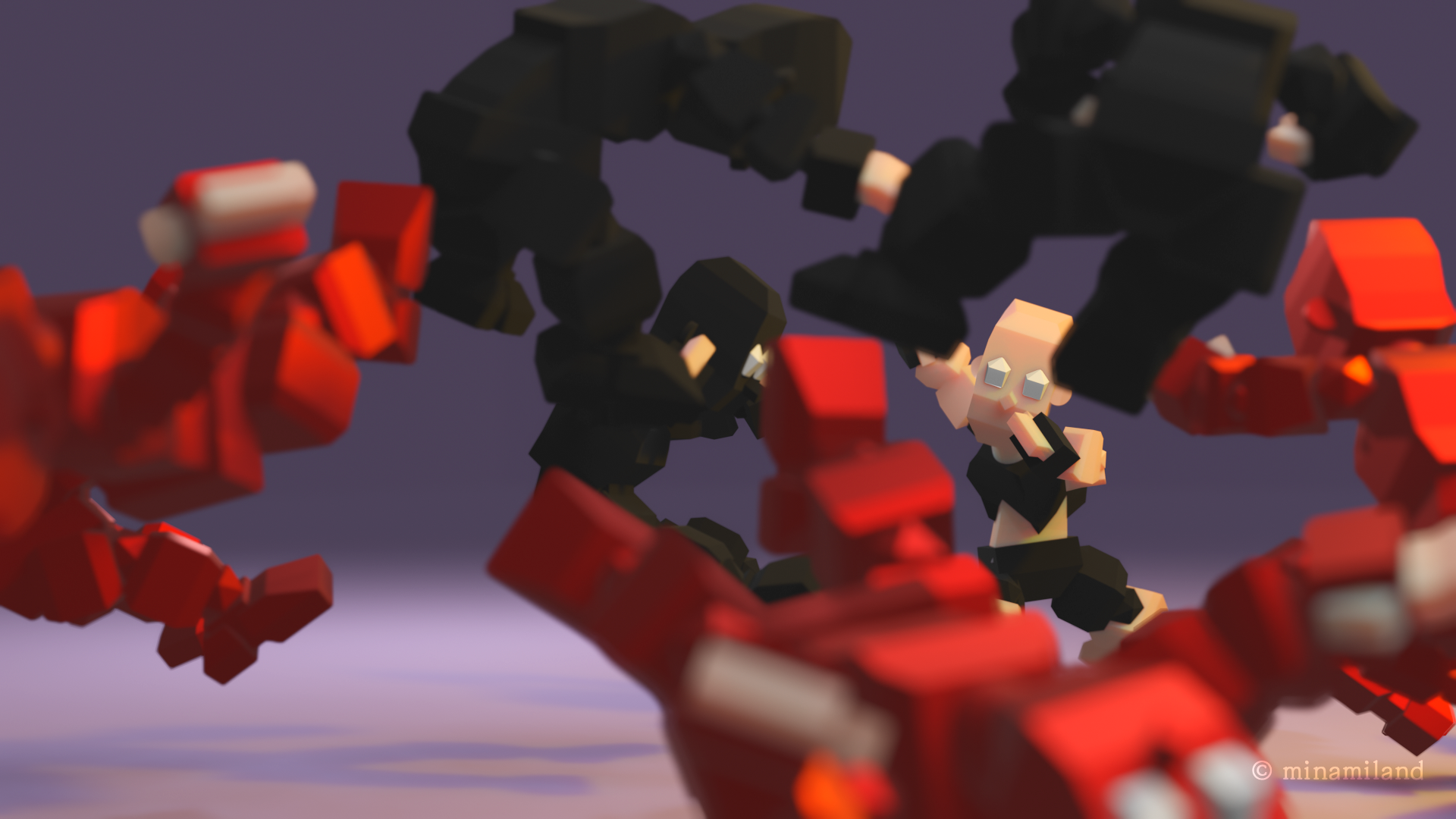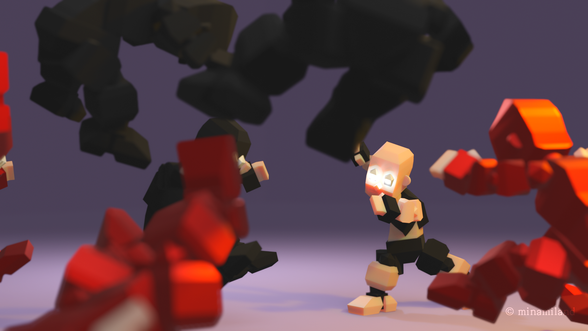 사방으로 바닥과 같은 톤으로 영역을 생성시키고 조명을 조정하고, 드디어 액션 배우들의 정렬