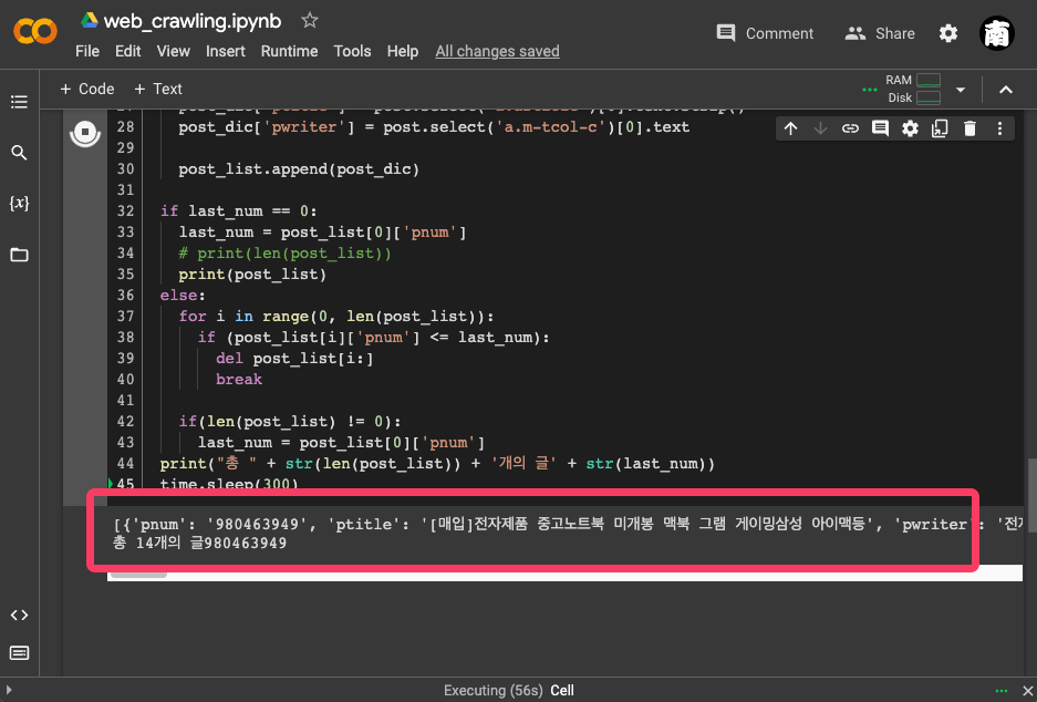 실행 부분을 잘 정리하고 크롤링하고자 하는 사이트의 구조를 잘 맞추면 크롤링이 된다