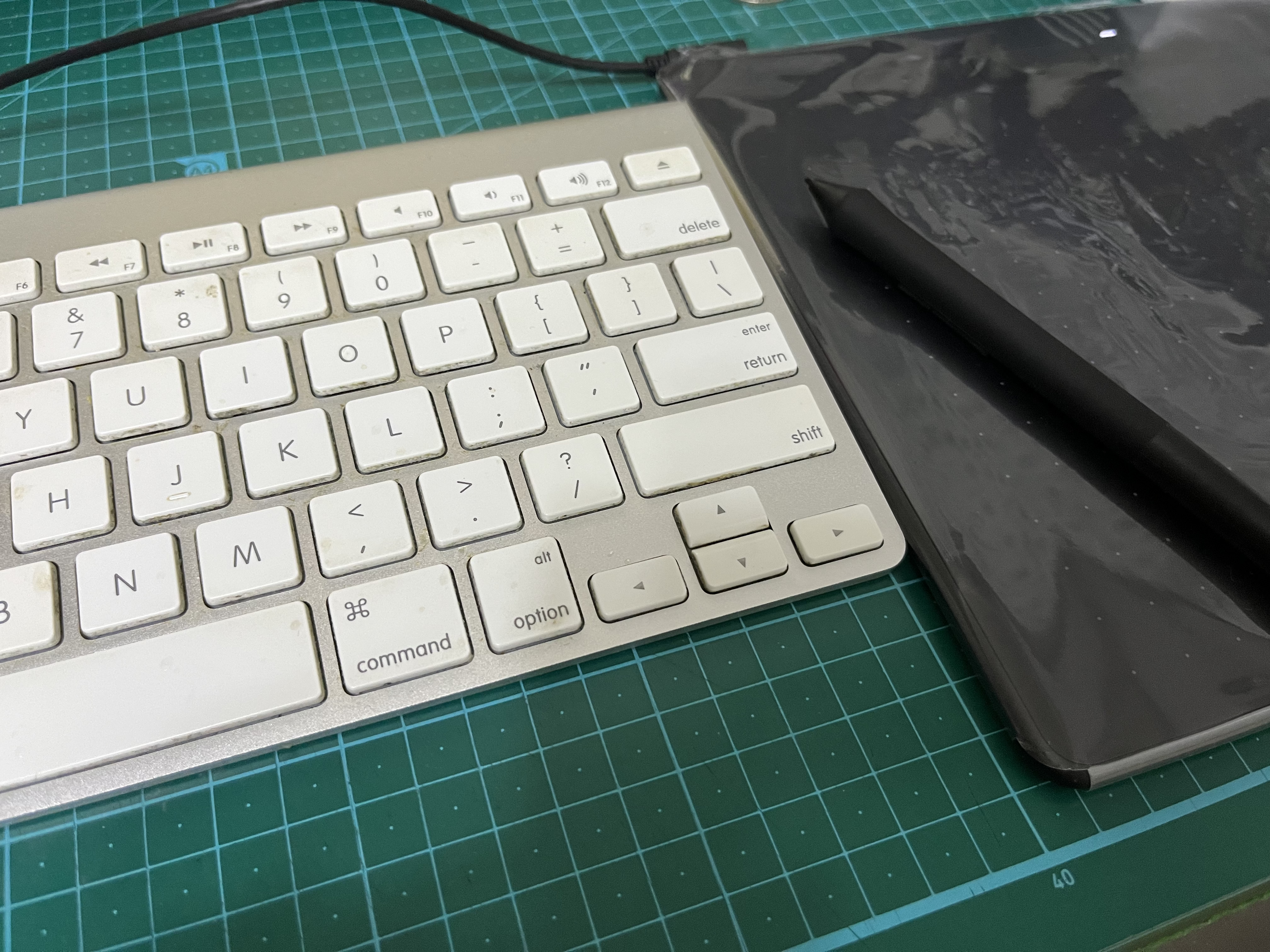 키보드 옆에 두고 테스트 중이다. 대체로 손목 통증을 호소하는 사람들 중 몇몇이 타블렛을 사용한 뒤로 완화되었다는 소문을 듣고 다시 태블릿을 들여오게 되었다. 태블릿 = 그림 그리는 도구로 인식되기도 하지만 꽤 많은 곳에서 사용되고 있는 만큼 여러 사용기가 구매를 고민하게 한 계기였다. 조만간 싸구려 모니터 보호 필름이라도 하나 사서 붙여야 할 것 같다.
