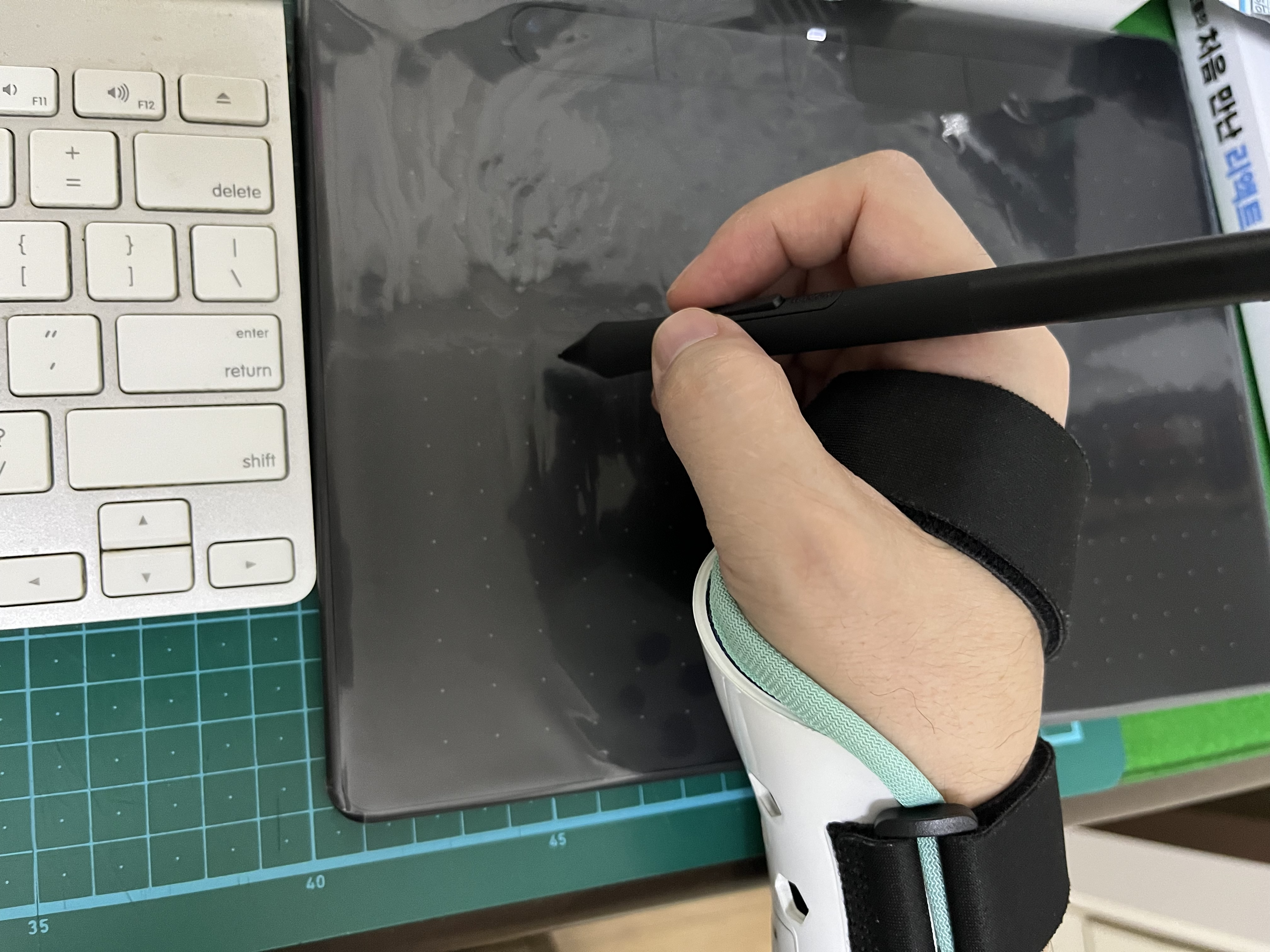 손목 움직임을 최소화(?) 하기 위해 태블릿의 맴 핑으로 좁게 하고 사용해 보고 있는 중이다. 최적의 환경을 찾아가는 과정..