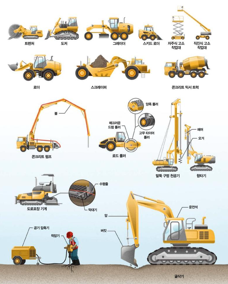 대체로 불도저, 포크레인, 굴삭기 정도의 특장차의 이름은 쉽게 접할 수 있지만 다양한 이름과 기능을 가진 차량을 알 수 있었다. 기능에 따라 크기와 명칭이 다르고 사용되는 곳도 다양하다.